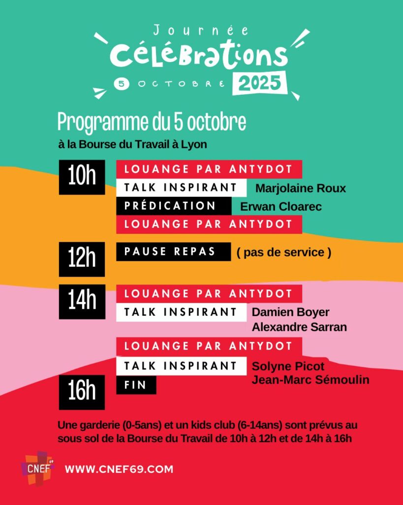 Le réseau évangélique de la région lyonnaise se rassemble chaque année pour célébrer Jésus-Christ et inviter chacun et chacune à le découvrir. Le prochain culte en commun sera un weekend : le samedi 4 et dimanche 5 octobre 2025.